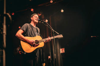 Er spielt eine Mischung aus Coversongs und eigenen Nummern.